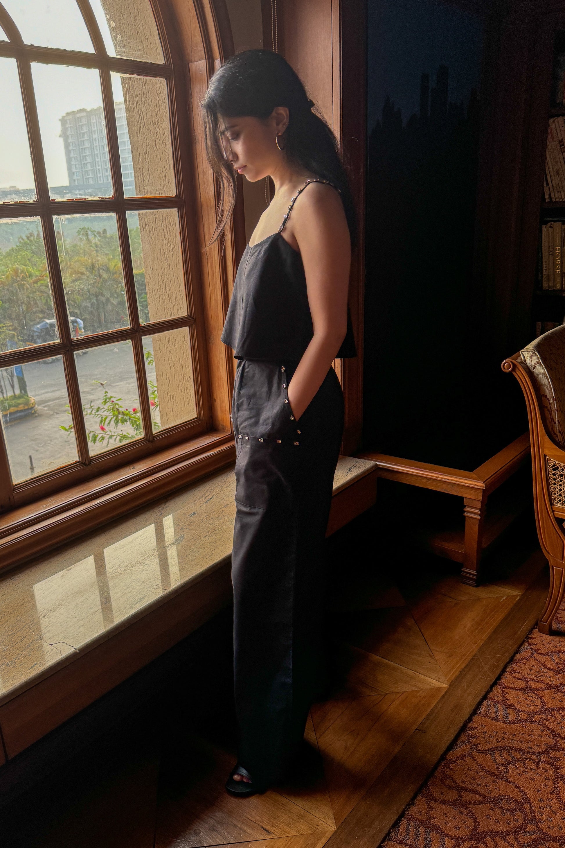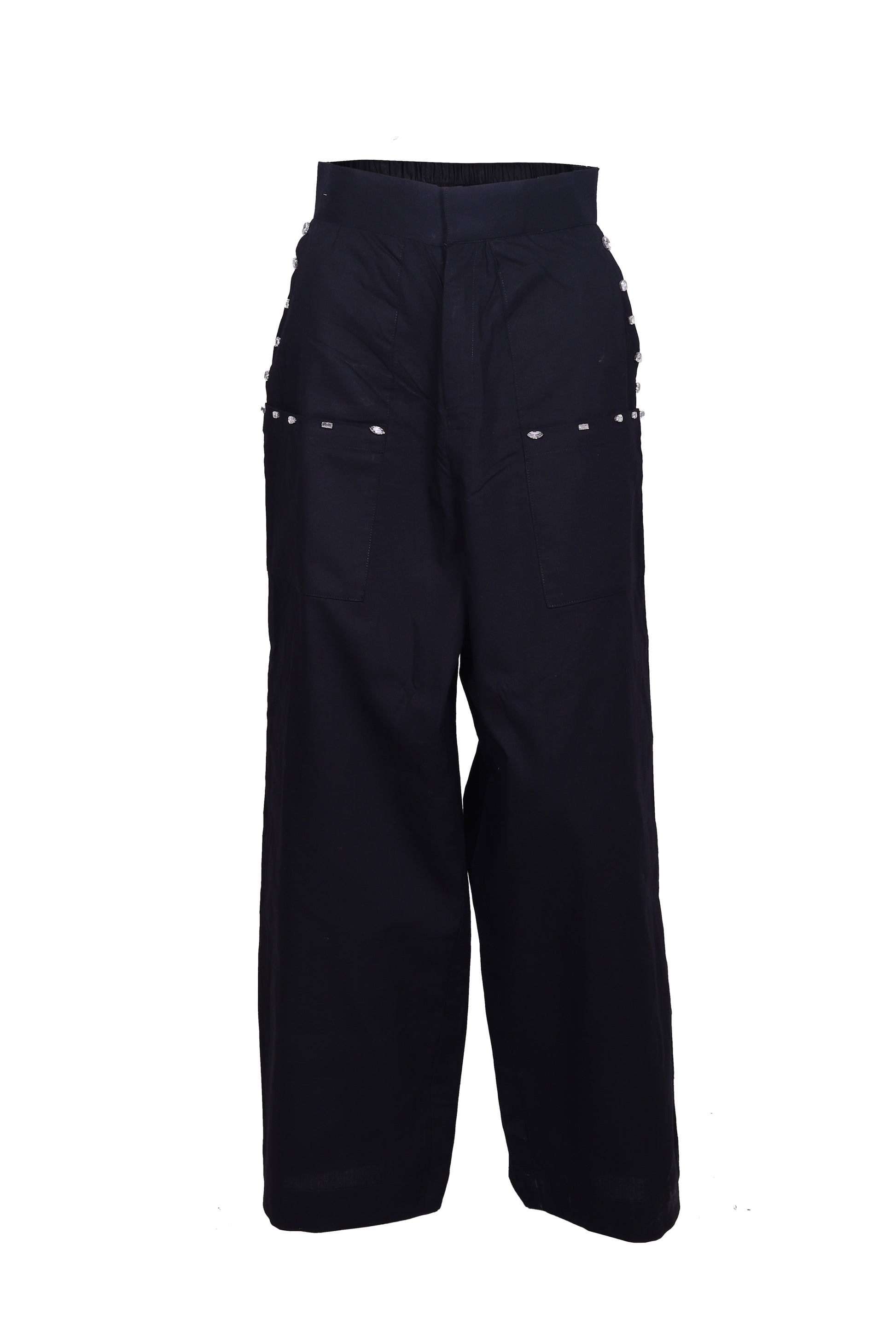 • Wide straight-leg & high waist fit in comfortable cotton fabric