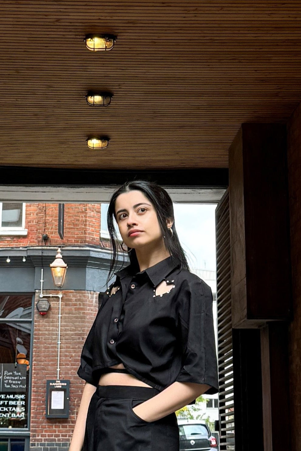 • With a crop length, it’s perfect for pairing with high-waisted bottoms.