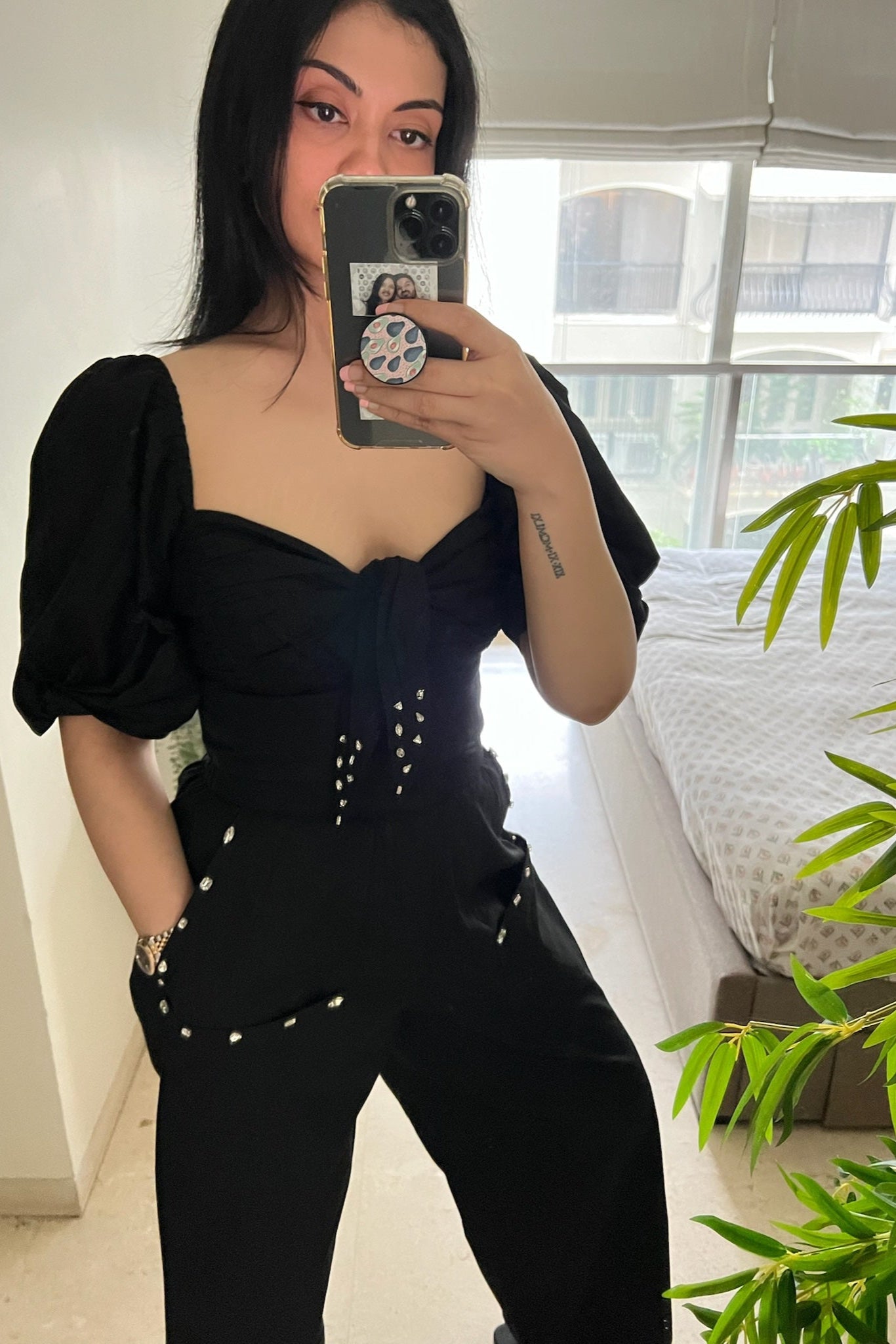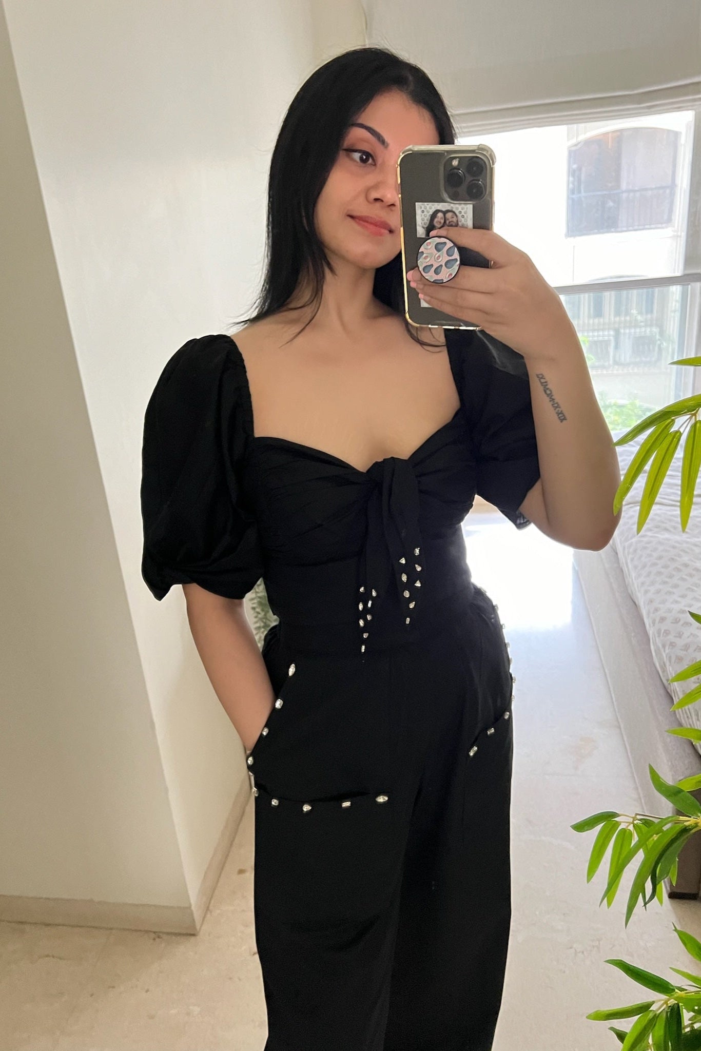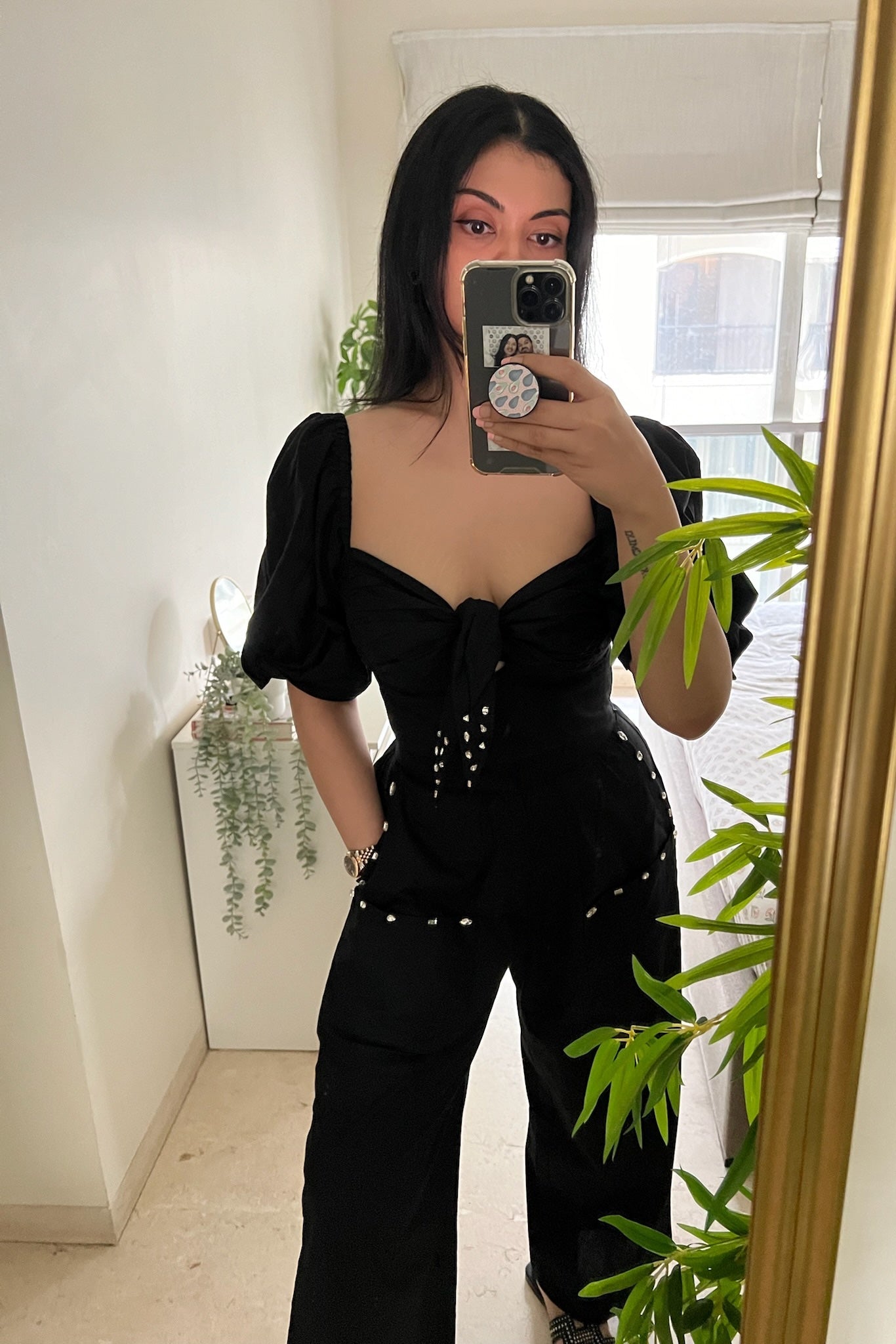 Make a stylish statement with our black Bow Tie Top, perfect for your next night out.