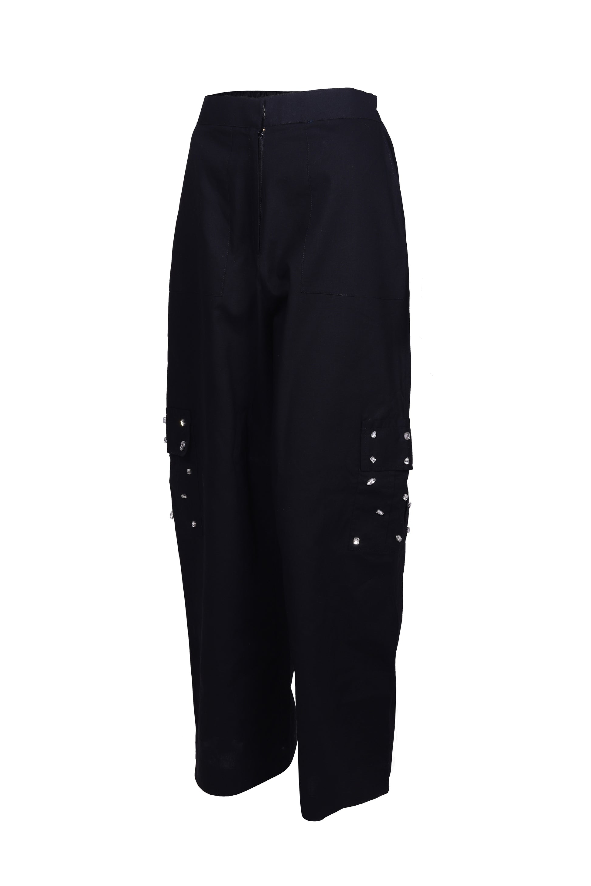 These stylish Cargo Trousers are designed for elevated occasion wear, featuring a blend of functionality and glam.