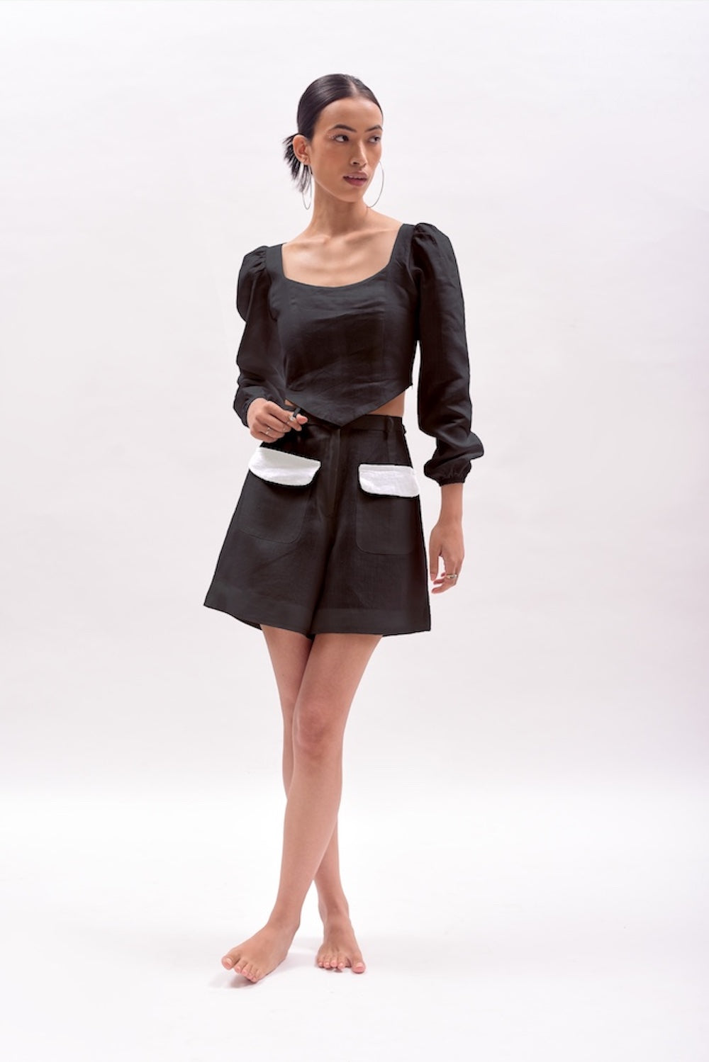Colour block shorts with 2 front pockets.
