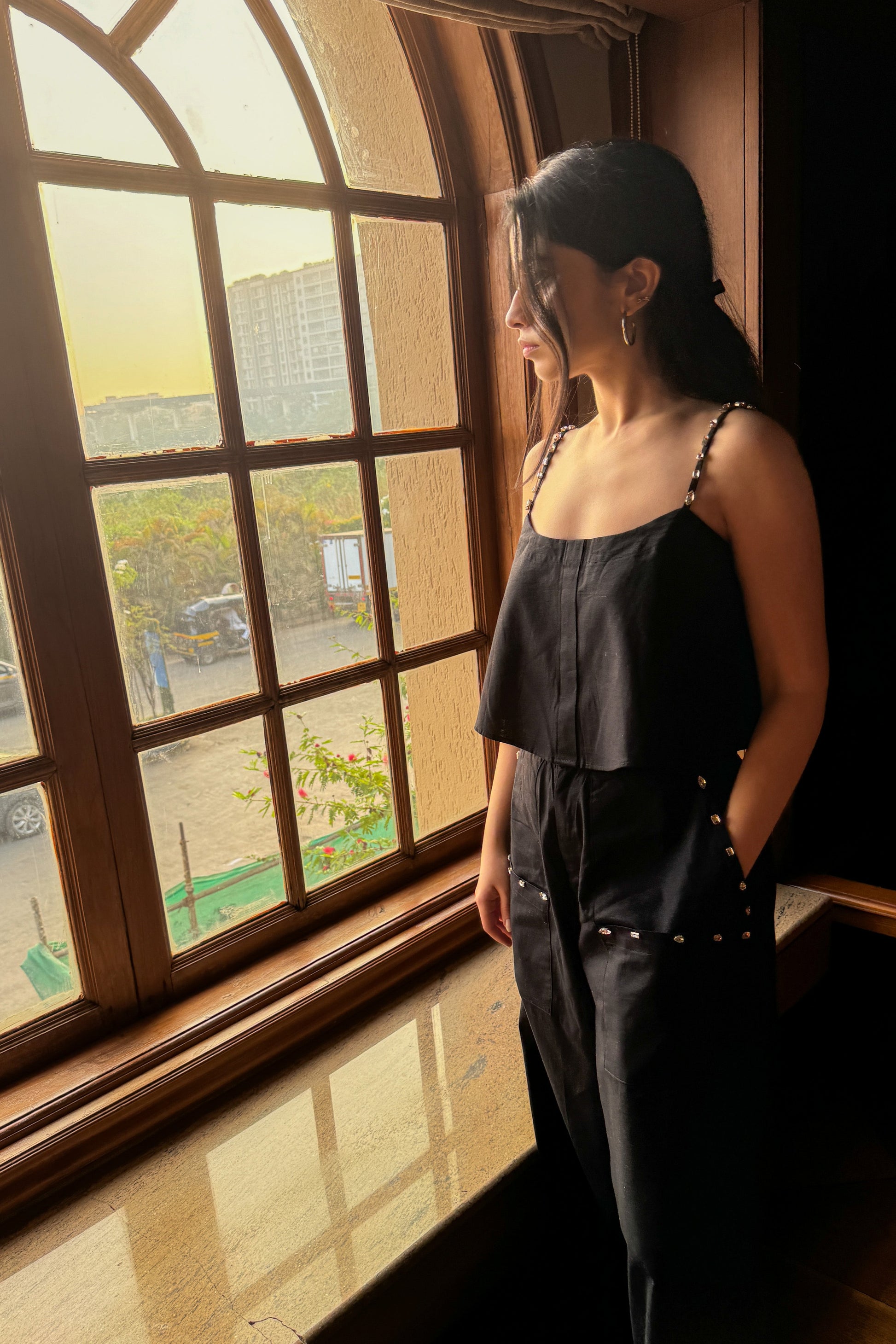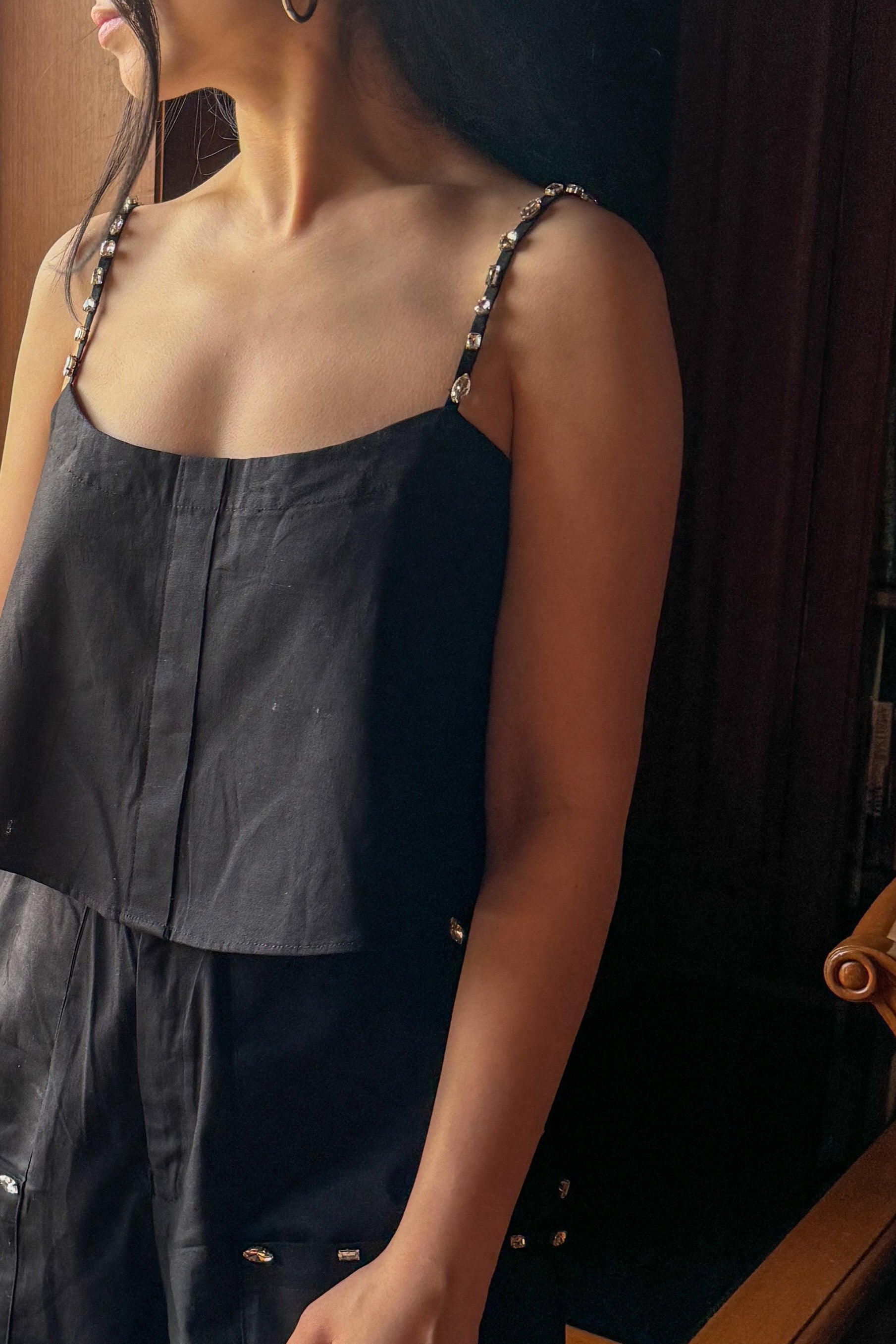 Shine bright on your next date night with our black Disco Cami, designed for a chic and stylish look.