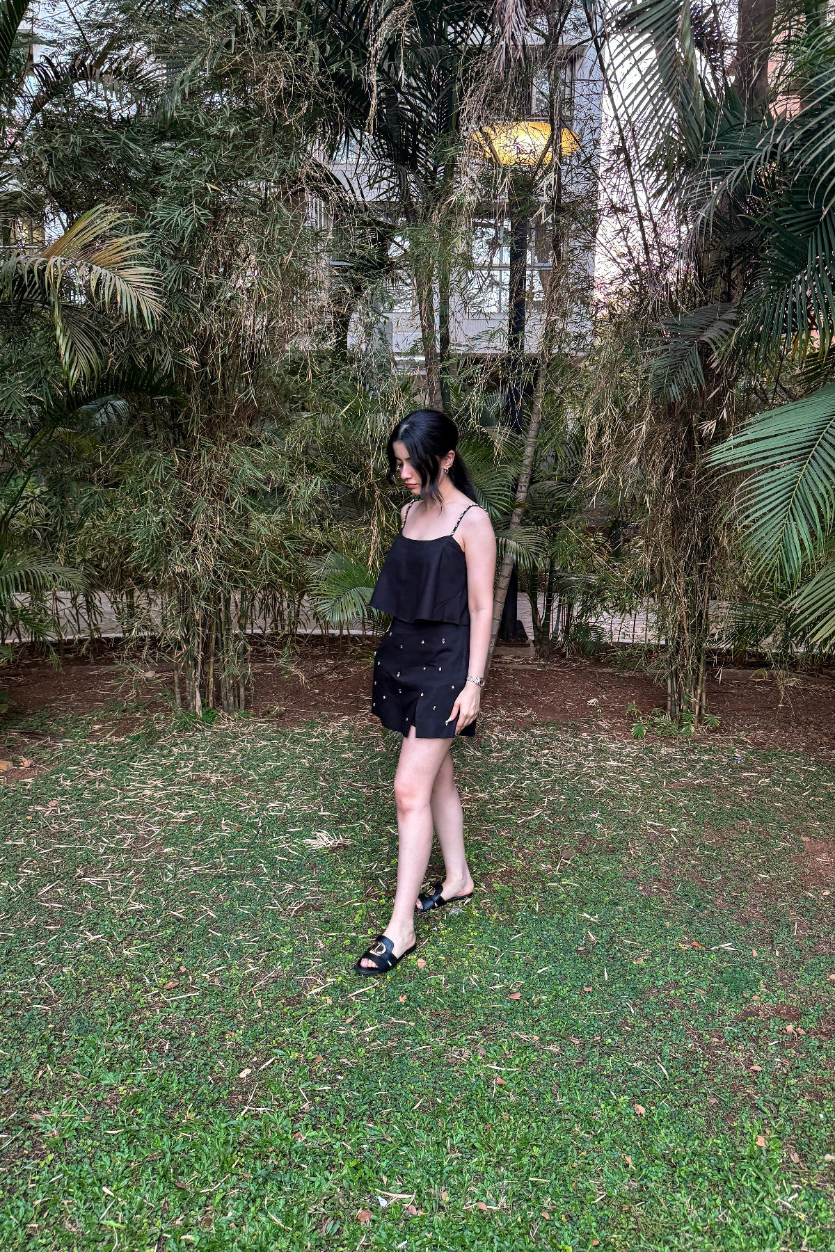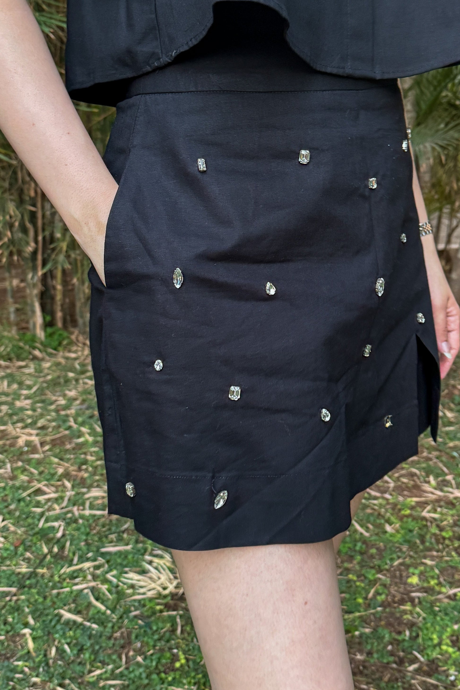 Turn heads with this stylish black high-waist skort, perfect for a date night.