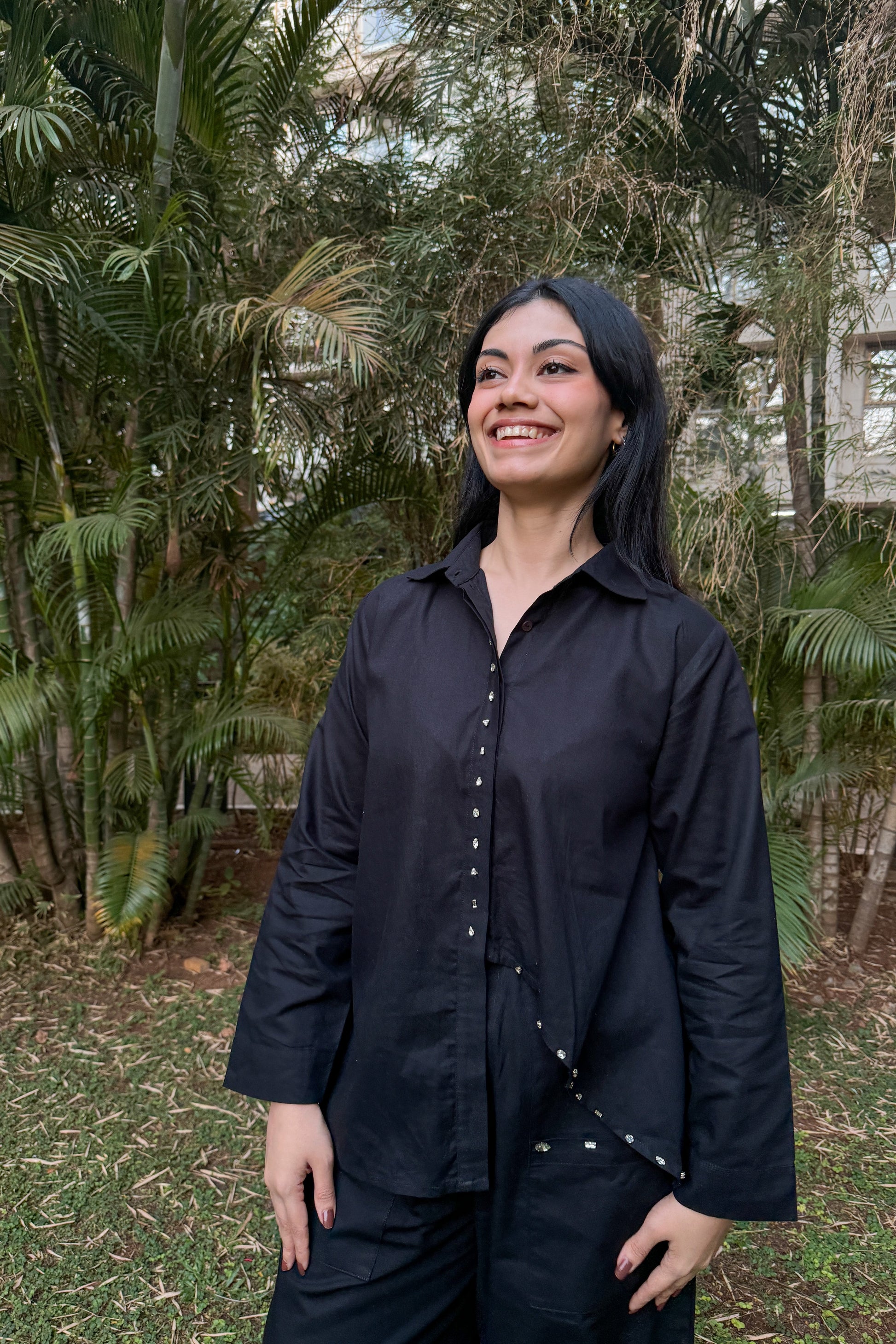 • Featuring concealed buttons and a classic collar, it effortlessly combines elegance with casual chic.
