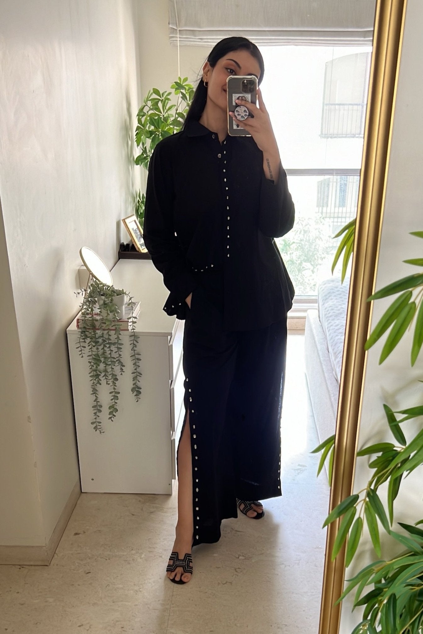 Celebrate in style with our Festive Set, featuring the elegant Asymmetrical Shirt paired with the chic Slit Trousers—the perfect ensemble for any indo western occasion.