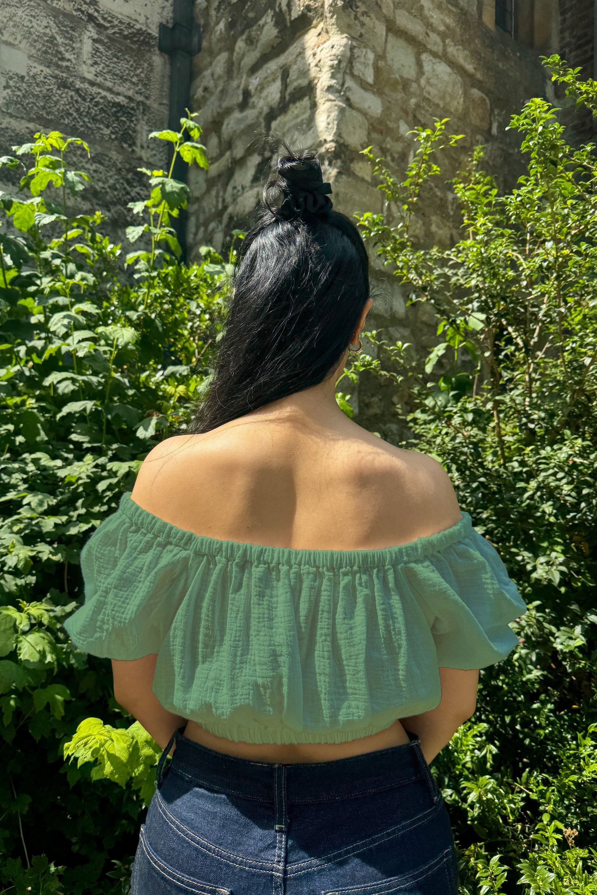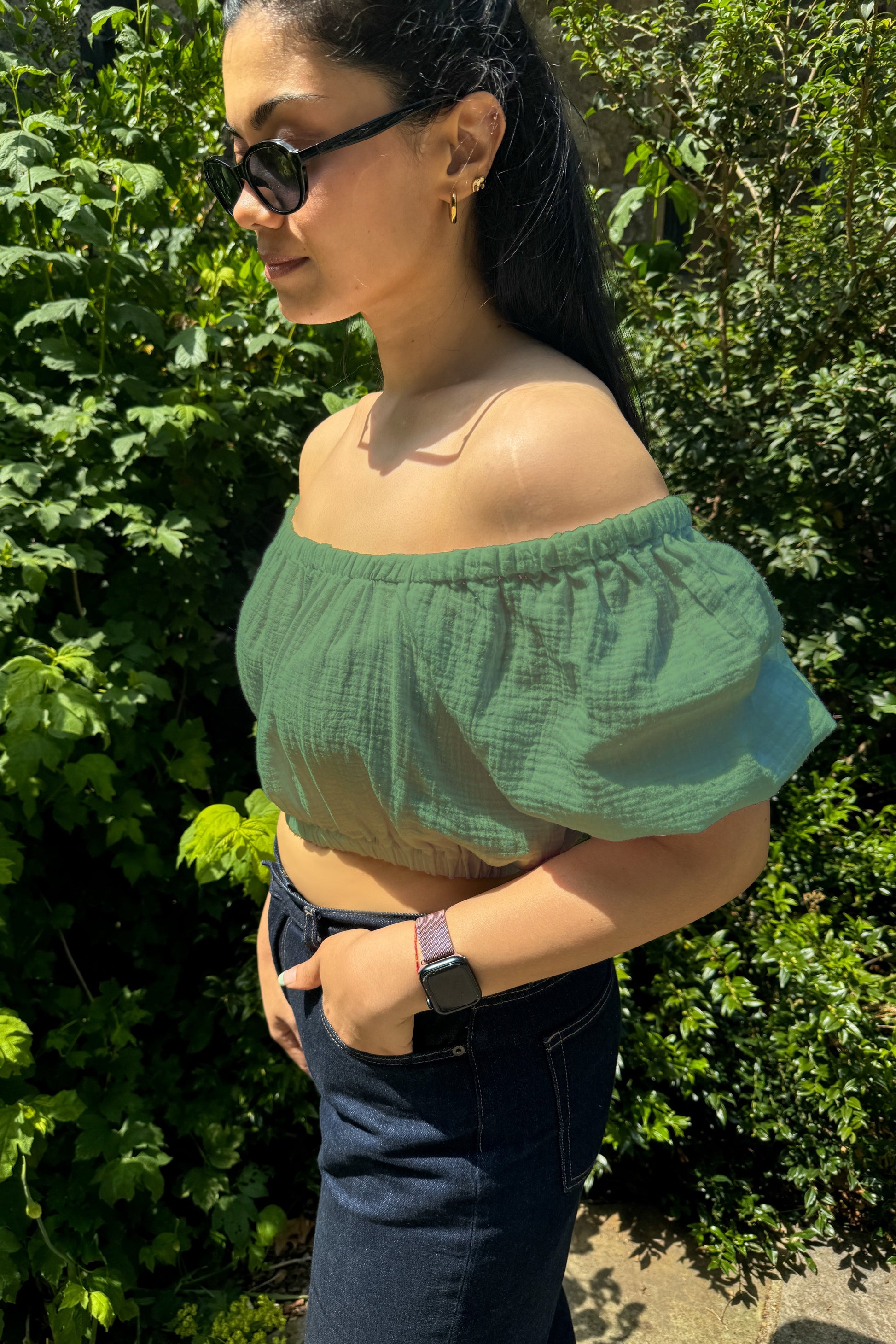 Off Shoulder top with waist elastic, can be worn 2 ways