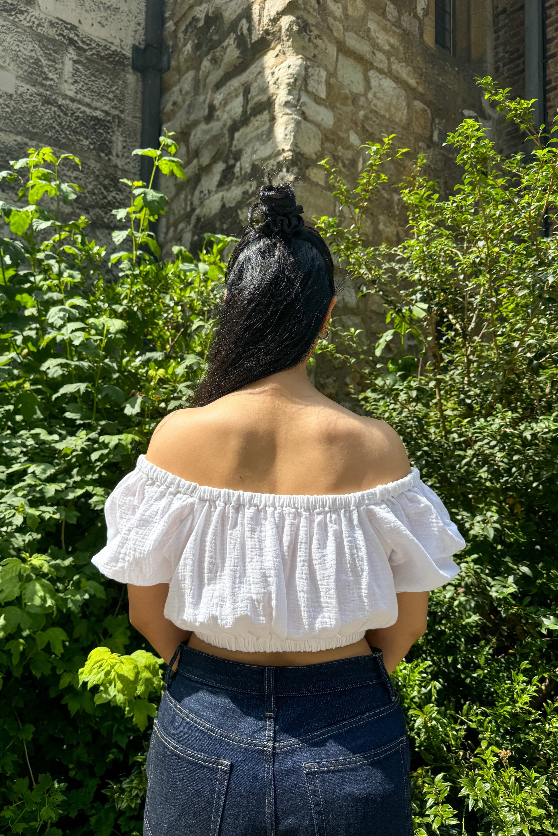 Off Shoulder top with waist elastic, can be worn 2 ways