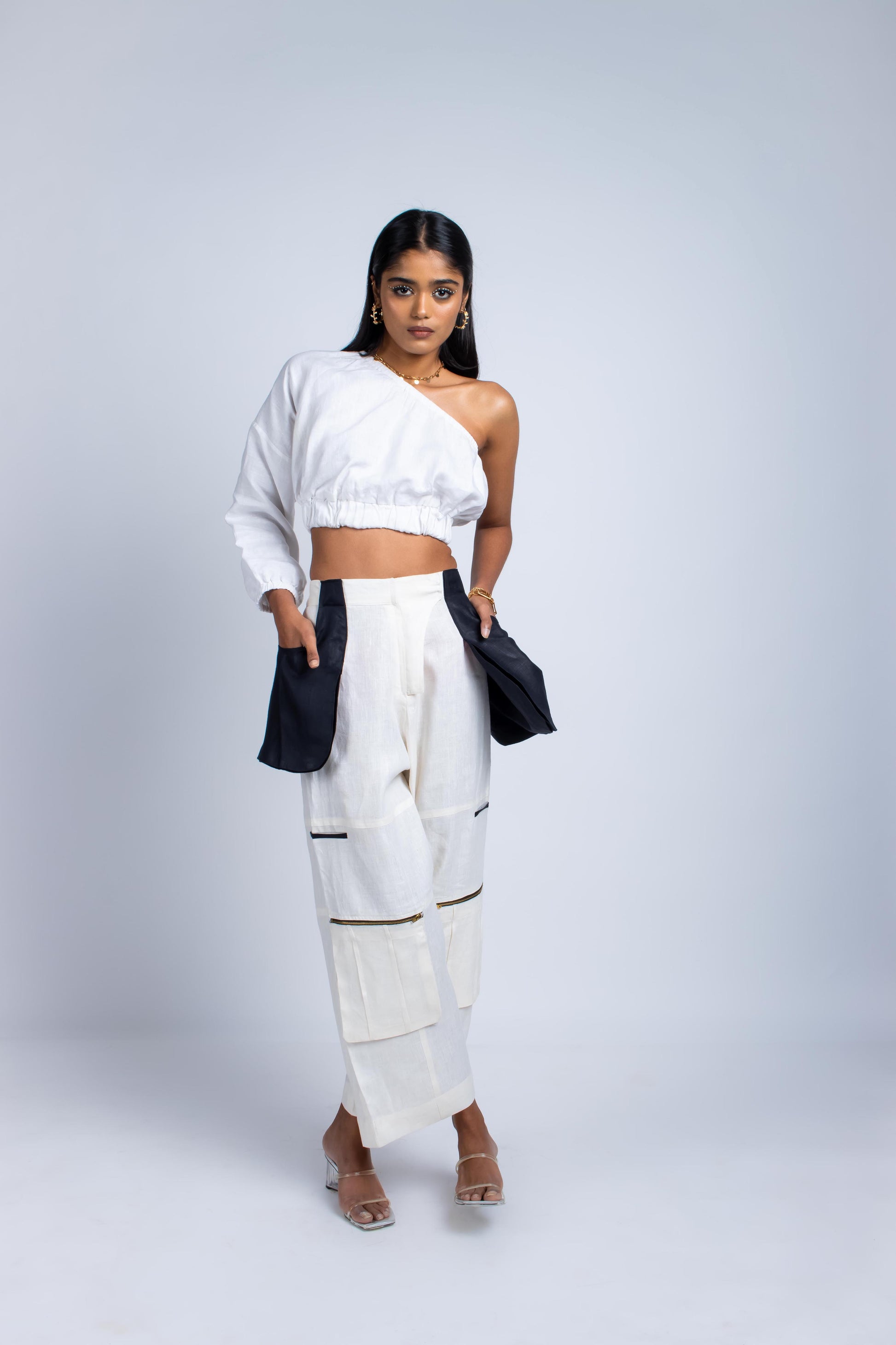 Straight leg colour block cargo pants with detached pockets and an elasticated waist for the best fit!